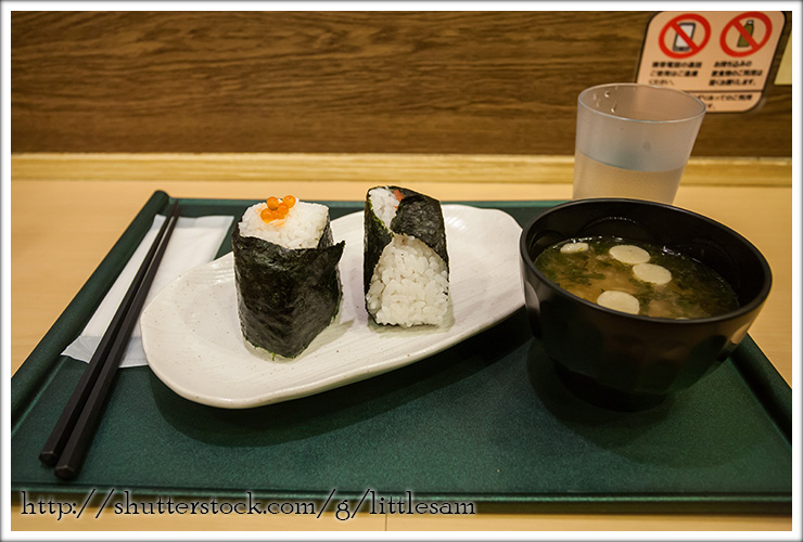 鎖好行李箱先去求一頓飽..點了兩顆御飯糰和一碗味僧湯..