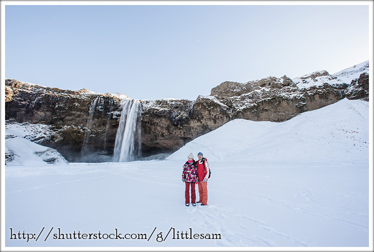 Seljalandsfoss瀑布特別的地方在於瀑布後有路可以走進去, 但這天的路上整個是結冰的, 看照片右下的區塊,
